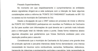 Ler maisO Departamento Nacional de Infraestrutura de Transportes – DNIT informou em seu site a interdição total da Ponte do Fandango, localizada na BR-153/RS, por parte da
