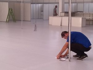 Quem conhece o salão de festas da Igreja São José se surpreenderá com a estrutura montada no local que, a partir da próxima segunda-feira, estará apto a receber pacientes para triagem e tratamento de coronavírus. A empresa ST Tendas, de Esteio, concluiu em 10 horas (ainda na segunda-feira – 27) a colocação de todo o piso, divisórias, instalações elétricas e hidráulicas no local. Hoje, a equipe que está no local está apenas fazendo os ajustes nas divisórias e limpeza.