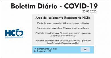 A Ala de isolamento respiratório do Hospital de Caridade e Beneficência de Cachoeira alcançou nesta terça-feira, 4 pacientes internados. Dos internados, 2 são residentes em