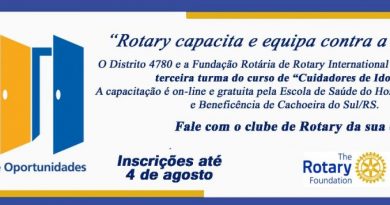 Ler maisEstão abertas até o próximo dia 4 as inscrições para a terceira turma do “Curso de Formação de Cuidadores de Idosos” do Distrito 4780 de