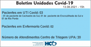 Junto ao HCB 5 pacientes internados, 3 na UTI Covid e 2 na enfermaria. Cachoeira completou nesta sexta-feira 9 dias sem registrar óbitos.