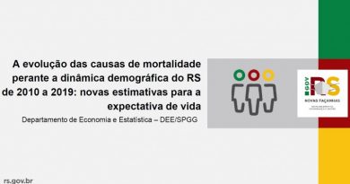 Ler maisA expectativa média de vida ao nascer no Rio Grande do Sul passou de 75,59 para 77,26 anos na comparação entre os períodos de 2010-12