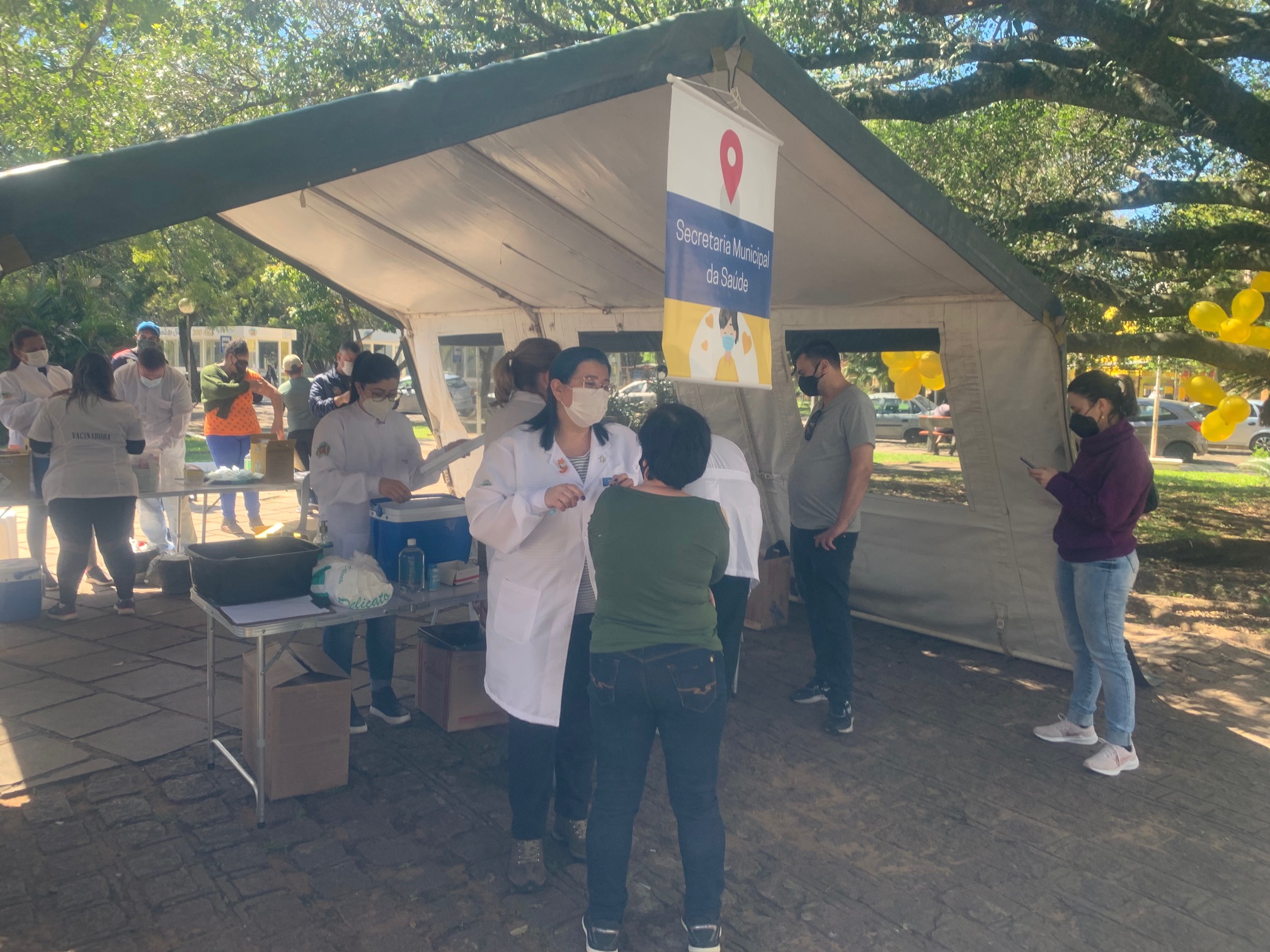 A feira organizada sábado (11/09) pela Secretaria Municipal da Saúde movimentou a Praça Honorato de Souza Santos, no centro da cidade. Promovida com o intuito de ampliar a cobertura da vacinação contra a Covid-19 nas diferentes faixas etárias (a partir dos 18 anos de idade), a ação mobilizou servidores municipais também para outras ações de saúde, como exames para diagnósticos de doenças e campanhas preventivas, como a do Setembro Amarelo, de combate ao suicídio.
