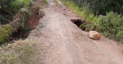 Ler maisA força da chuva rompeu o bueiro que corta a estrada do Corredor dos Silva, na Água Morna, interrompendo o trânsito no local. A Secretaria