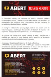 A Associação Brasileira de Emissoras de Rádio e Televisão (Abert) divulgou nota por considerar preocupantes as decisões judiciais que interferem na programação das emissoras, com o cerceamento da livre circulação de