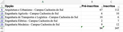 A Direção do Campus da UFSM/Cachoeira divulgou nesta quinta-feira, o número de inscritos para  no Vestibular Extraordinário para os cursos do campus de Cachoeira do Sul. Segundo o Diretor Anderson Dalmolin, foram 147 sendo que 94 ainda não tiveram a inscrição homologada por pagamento não realizado ou compensado, que pode demorar até 7 dias. O Vestibular no Campus de Cachoeira será realizado dia 9 de julho e tem 68 vagas em 5 cursos oferecidos. Esse serão o primeiro Vestibular da UFSM/Cachoeira