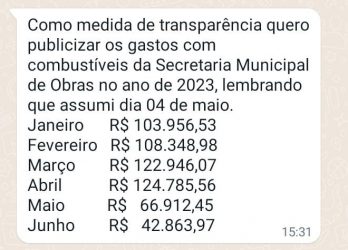 Secretário Municipal de Obras reduz pela metade gasto com combustíveis, em dois meses