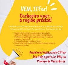 Ler maisA Audiência Pública realizada pela Assembléia Legislativa do Estado para tratar da instalação de um campus do Instituto Federal Farroupilha (IFFar) em Cachoeira será realizada