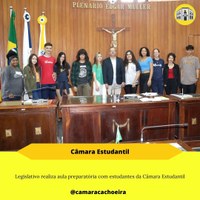 Ler maisA Câmara realizou na terça-feira, 24, a aula preparatória, realizada pelo Diretor-Geral da Casa, Roger Zahn, com os alunos da Câmara Estudantil Cachoeirense (CEC) 2023. Na