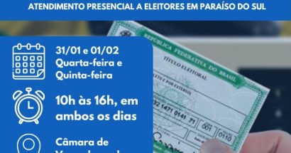 Justiça Eleitoral estará com atendimento presencial em Paraíso do Sul na próxima semana