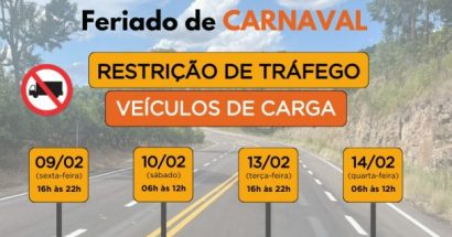 Leia Mais ...O tráfego de caminhões nas rodovias estaduais com pista simples contará com restrições de horários durante o feriado de Carnaval.