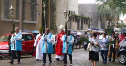 Ler maisCom a procissão saindo da Casa da Criança na rua Conde de Porto Alegre e a Benção dos Ramos em frente á Catedral Nossa Senhora