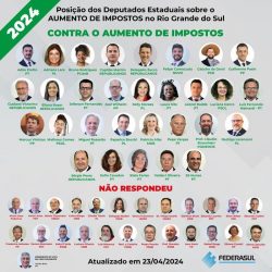 Principal combatente da proposta de elevação do ICMS, a Federação de Entidades Empresariais do Rio Grande do Sul (Federasul) divulgou nesta terça-feira (23) uma lista com o nome de 30 deputados estaduais contrários ao aumento do imposto. Nenhum se disse favorável à elevação do tributo, enquanto 24 não responderam.