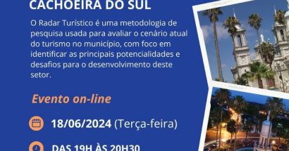 Ler maisA Secretaria Municipal de Turismo, Esporte e Lazer convida toda a comunidade para a apresentação virtual do Radar Turístico, composto por um diagnóstico estratégico que