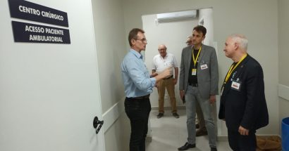 Os deputados federal Heitor Schuch e estadual Elton Weber, juntamente com o presidente da Coohaf (Cooperativa Habitacional da Agricultura Familiar),
