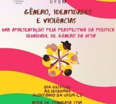 Ler maisNa próxima semana, quarta-feira, 3 de julho, às 13h30min, ocorrerá uma roda de conversa no Auditório da UFSM – Cachoeira do Sul com o tema “Gênero, identidades
