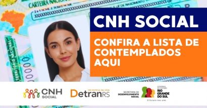 Ler maisDetranRS e Secretaria de Desenvolvimento Social (Sedes) divulgaram hoje (21) a lista dos contemplados no programa CNH Social 2025. A lista já está disponível em https://www.detran.rs.gov.br/lista-de-contemplados-para-a-cnh-social-2025 e amanhã (22) sairá no Diário Oficial do Estado. Os