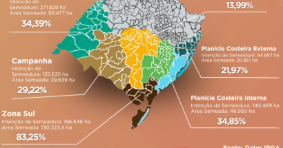 Ler maisA semeadura do arroz no Rio Grande do Sul já alcança 38,05% da área prevista para a Safra 2025/2026, segundo dados atualizados dela Divisão de