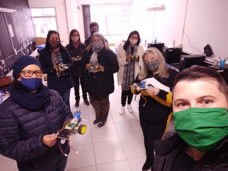 a Secretaria Municipal de Educação realizou o primeiro encontro de Formação Continuada no Espaço Maker, inaugurado em fevereiro deste ano. A temática desenvolvida foi robótica livre com montagem do arduino (Uno). Considerando que a formação foi realizada de forma presencial, foram tomadas todas as medidas de prevenção ao novo coronavírus, conforme orientações dos decretos vigentes. Participaram do encontro as 5 professoras ponto-focal das escolas municipais contempladas com o projeto Educação Gaúcha Conectada, da Iniciativa BNDES, sendo elas: EMEF Dinah Néri Pereira; EMEF Dr. Getúlio Vargas; EMEF Mário Godoy; EMEF Manoel Carvalho Portella e EMEF Maria Pacicco de Freitas. A EMEF Dora Abreu também participou do encontro. A formação foi mediada pelo Prof. Filipi Michels Almansa, mestrando no Programa de Pós-Graduação em Educação da Universidade Federal de Santa Maria (UFSM).