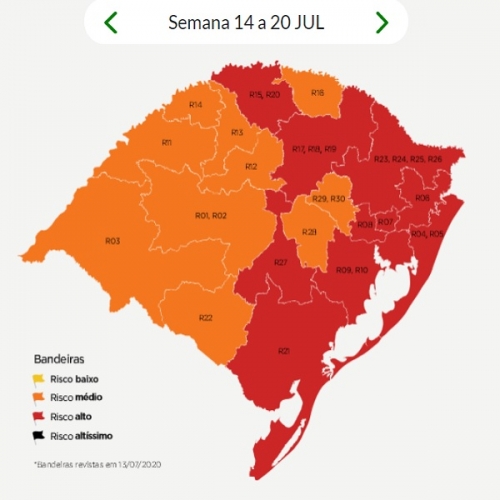 Somam-se a elas Porto Alegre, Canoas, Capão da Canoa e Pelotas, que já haviam sido classificadas com alto risco na semana anterior e não poderiam ter regressão na bandeira.