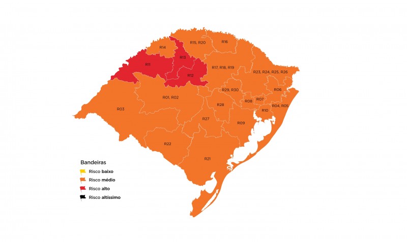 As regiões de Cruz Alta, Ijuí e Santo Ângelo – todas da macrorregião Missioneira, que estavam na bandeira laranja –, também apresentaram piora nos indicadores e voltaram para a bandeira vermelha.