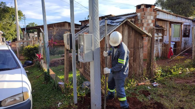 A RGE iniciou na tarde desta sexta-feira (11) a colocação dos postes dentro do novo padrão de entrada de energia elétrica, que foram doados através negociação que uniu esforços do secretário municipal de Indústria e Comércio, Pipa Germanos, e do secretário municipal do Trabalho e Ação Social, Itamar Luz. Ao todo são 200 postes. O só nesta sexta foram instalados postes em 10 residências da Vila Nova. Neste sábado, o trabalho segue no Bairro Noêmia. Cerca de 80 casas já estão cadastradas.