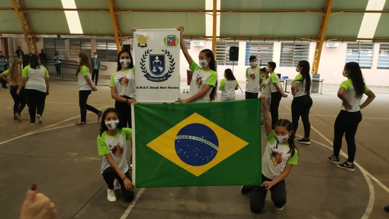 A Escola Cívico Militar Dinah Néri Pereira realizou na sexta-feira atividades alusivas à Pátria, com hasteamento das bandeiras, descerramento da placa com a nova nomenclatura e quatro apresentações de alunos.