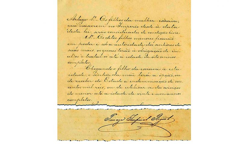 “Os filhos de mulher escrava que nascerem no Império desde a data desta lei, serão considerados de condição livre”. O texto assinado pela princesa Isabel, em 28 de setembro de 1871, ficou conhecido como a Lei do Ventre Livre ou Lei Rio Branco. A legislação foi publicada passados 21 anos da Lei Eusébio de Queirós, que proibiu o tráfico negreiro no Brasil Imperial.