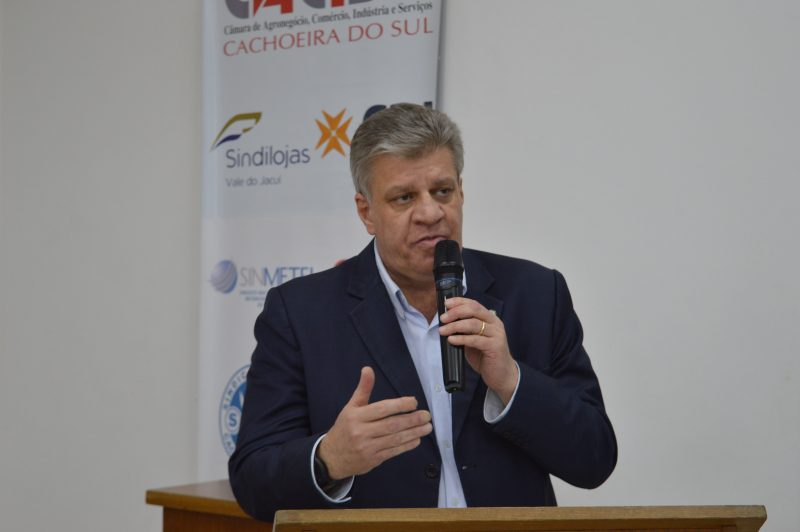 O prefeito José Otávio Germano participou nesta sexta-feira (26) da última edição deste ano do evento “CACISC ao Meio-Dia”, promovido pela Câmara do Agronegócio, Comércio, Indústria e Serviços de Cachoeira do Sul. A presidente da entidade, advogada Maria Luísa Bonini, abriu o evento. Antes da fala do prefeito, o movimento rotariano de Cachoeira do Sul entregou a José Otávio o pedido para revitalização da Rua Paul Harris.