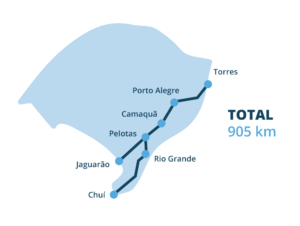 O corredor será composto de estações de recarga rápida nas cidades de Torres, Osório, Eldorado do Sul, Barra do Ribeiro, Cristal, Pelotas, Rio Grande, Santa Vitória do Palmar, Arroio Grande e Jaguarão. Ao todo serão instaladas 11 ERRs, já que a cidade de Santa Vitória do Palmar irá receber duas estações, tendo em vista a extensão do município e o trecho de conexão. Isso possibilitará viajar até o Uruguai, que já possui carregadores elétricos, distribuídos em seu território. A partir do país vizinho, será possível chegar a Buenos Aires, na Argentina, pela travessia do estuário do Prata. Também será possível acessar a Argentina e o Paraguai através das rotas da CELESC- Centrais Elétricas de Santa Catarina e da COPEL – Companhia Paranaense de Energia.