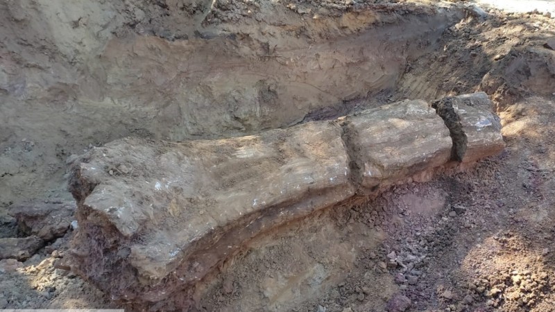“Quando iniciei a escavação do material que estava aflorando, percebi que ele era muito maior que imaginei no início”, contou o biólogo e paleontólogo José Darival Ferreira, da SD Engenharia e Consultoria. “Precisamos da ajuda de um caminhão com um braço mecânico e retroescavadeira para retirar o tronco fóssil do local”, disse.