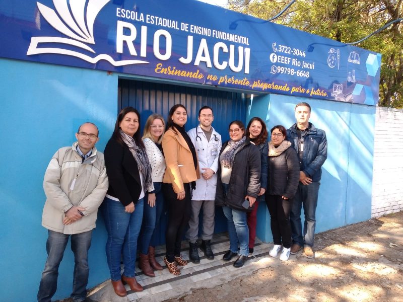 Iniciando as palestras, a equipe contou com o médico Alexandre Pedroso Lemos, que hoje atua no SUS e também na rede particular. Ele contou aos alunos da escola Rio Jacuí sobre suas experiências e os caminhos pelos quais ele percorreu, além de incentivar e destacar a importância da dedicação aos estudos como algo fundamental para a conquista profissional.