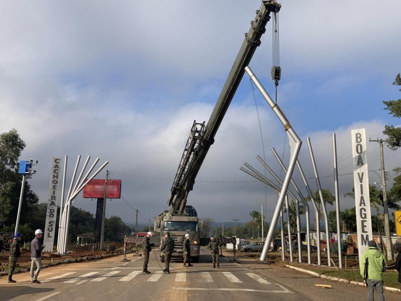 A Secretaria Municipal de Planejamento pretende inaugurar o pórtico de entrada da cidade, no feriado do dia 12 de outubro. Foi o que disse a Secretaria Cláudia Scarparo. Conforme ela, todas as secretarias envolvidas não estão medindo esforços para que o trabalho seja concluído na semana anterior a data. Neste momento está em fase de pavimentação a área de 1.900m² com blocos intertravados de concreto.A obra está sendo feita através da parceria entre a Prefeitura de Cachoeira do Sul e a Cooperativa Sicredi Centro Leste RS, que ficou responsável pela organização do consórcio de patrocinadores da obra.