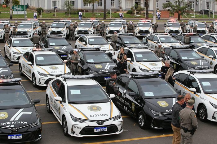 A Brigada Militar, Polícia Civil e Corpo de Bombeiros Militar do Rio Grande do Sul receberam 166 novas viaturas zero quilômetros na manhã desta segunda-feira em solenidade realizada no estacionamento da avenida Padre Cacique, em Porto Alegre. Pela primeira vez, a Polícia Civil terá veículos do modelo Toyota Corolla. A instituição ganhou ainda 156 fuzis T4 calibre 5.56
