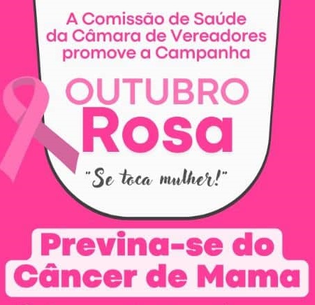 A Comissão de Saúde da Câmara de Vereadores, formada pelos vereadores Jeremias Madeira (PL), Luís Paixão (PP) e Magaiver Dias (PSDB) realizará durante o mês de outubro diversas ações alusivas ao Outubro Rosa, mês de combate ao câncer de mama.