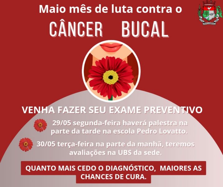A Secretaria Municipal de Saúde de Novo Cabrais, através da equipe de saúde bucal, irá intensificar ações de conscientização e prevenção ao câncer de boca, doença crônica não transmissível que possui como principal fator de risco o tabagismo. Neste mês, as ações se juntam ao projeto Maio Vermelho, que contará também com palestras, para lembrar a importância da prevenção e diagnóstico da doença.