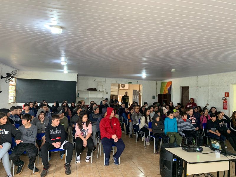 Na Taufik Germano, a recepção foi feita pela diretora da escola, Graziele Santos Marques, vice-diretora, Roseana Pohl e a supervisora, Viviane de Oliveira Pereira. A palestra foi ministrada para cerca de 80 alunos do 6º ao 9º ano.
