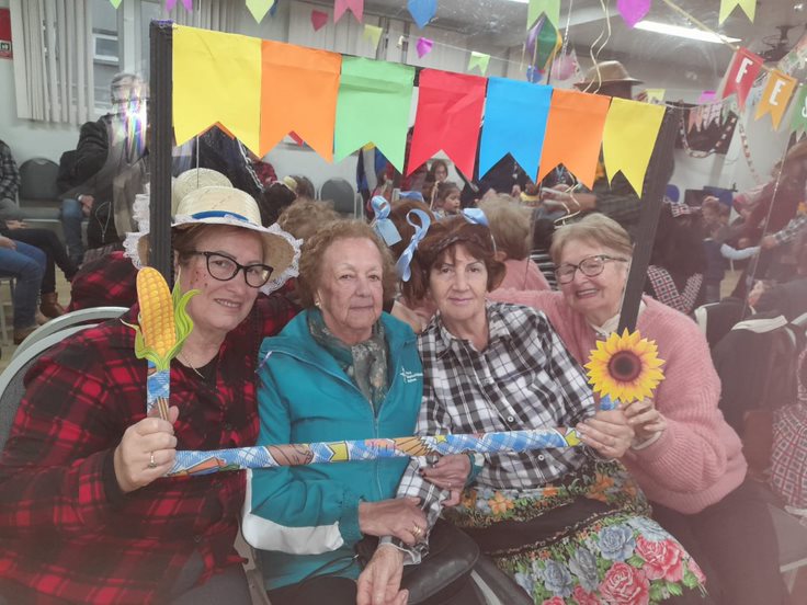 O grupo de idosos do Sesc Maturidade Ativa de Cachoeira do Sul participou de uma “Festa Julina” na última quarta-feira, dia 12 de julho. O evento contou com comidas típicas e muitas brincadeiras, que colocaram os participantes para se exercitarem e se divertirem. “É lindo ver o brilho no olhar deles ao participar desse tipo de atividade”, destaca a facilitadora Lidiane Oliveira, que é responsável pelo grupo. “É através de atividades culturais, de lazer, esporte e cultura como essas que vamos promovendo uma ressignificação do envelhecimento, fazendo com que a terceira idade seja um período ativo, saudável e muito mais feliz”, pontua.