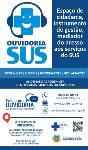A Ouvidoria do SUS funciona de segundas às sextas-feiras, das 8h às 12h e das 13h30min às 16h30min.