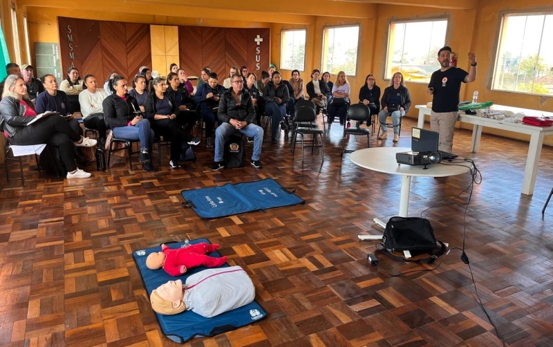 A Secretaria Municipal da Saúde reuniu agentes comunitários de saúde e agentes de combate às endemias para nova capacitação na terça-feira (16/09), no auditório do antigo Hospital da Liga. A proposta da gestão municipal foi aprimorar conhecimentos dos servidores em primeiros socorros, com foco nos protocolos específicos à rotina diária dos agentes em seus respectivos territórios. O evento ocorreu no turno da manhã e envolveu orientações técnicas e teóricas, assim como demonstrações práticas, acerca de condutas indicadas em situações de urgência e emergência como acidentes de trânsito, lesões e fraturas, choque elétrico, convulsões, parada cardiorrespiratória, entre outras. A condução do treinamento esteve a cargo do enfermeiro Giovani Freitas.
