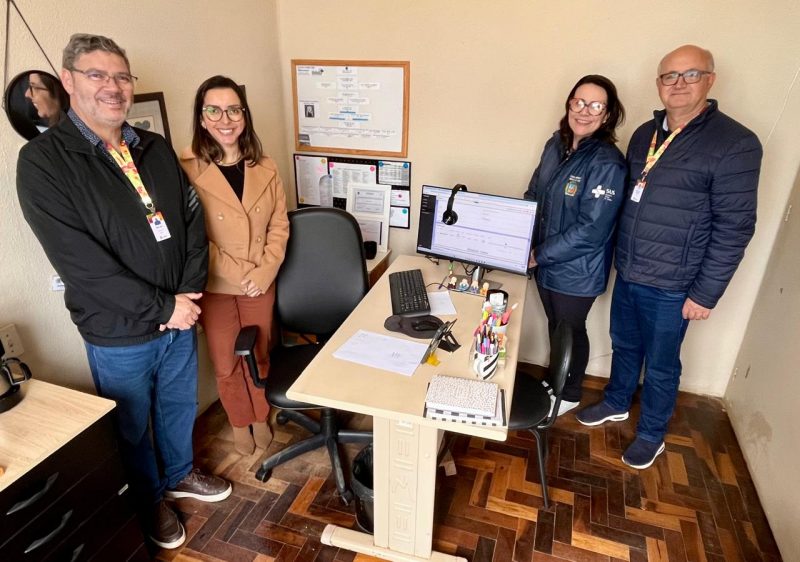 A 8ª Coordenadoria Regional de Saúde fez a entrega de um kit de equipamentos à Ouvidoria do SUS de Cachoeira do Sul, em operação na sede da Secretaria Municipal da Saúde. Financiados pelo governo federal, os itens foram repassados pela saúde do Estado com o objetivo de qualificar o atendimento aos usuários do SUS que encaminham ao serviço suas reclamações, denúncias, sugestões e elogios no que se refere à saúde pública. A iniciativa, anunciada pela SES em 2024, destinou os kits a 38 ouvidorias de municípios com mais de 50 mil habitantes, garantindo a cada uma delas computador, monitor, fones e uma cadeira. A doação foi formalizada pelo coordenador da 8ª CRS, Júlio Lopes, e pelo Ouvidor Regional do SUS, Gilmar Colombelli, recepcionados na secretaria pela titular Camila Barreto e pela Ouvidora do SUS no município, Viviane Souza.