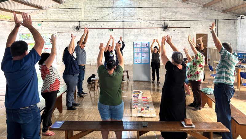 A Estratégia de Atenção Primária (EAP) Rural Volante Norte desenvolveu, semana passada, na localidade de Faxinal da Guardinha, uma ação de educação em saúde voltada aos cuidados no controle do diabetes e na atenção à saúde mental. A equipe de saúde reuniu em torno de 20 usuários do SUS no salão da Igreja Espírito Santo, onde ocorreu uma roda de conversa coordenada pela assistente social Gisele Boulanger sobre saúde mental e diabetes, seguida das dicas práticas alimentares das pessoas portadoras da doença com a enfermeira Geórgia Rampelotto e apresentação do mural sobre as quantidades de açúcar presentes nos alimentos industrializados, feita pela agente comunitária de saúde Giulia Ribeiro. Ainda para os pacientes com diabetes, houve palestra sobre autocuidado e auto exame dos pés. Outra atividade executada durante o evento foi a avaliação multidimensional da pessoa idosa, desenvolvida pelas agentes de saúde, com triagem a cargo da equipe de enfermagem.