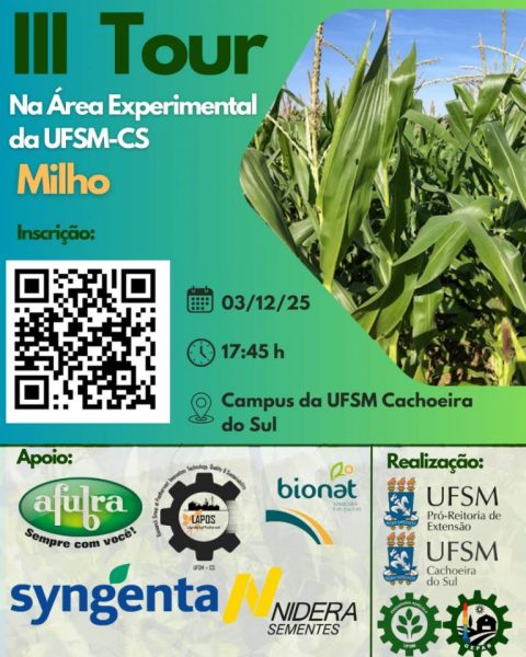 O Campus da UFSM em Cachoeira do Sul estará realizando o III Tour na Área Experimental, que acontecerá no dia 3 de dezembro, às 17h45, na área experimental do campus. O evento é aberto a produtores, comunidade e acadêmicos.