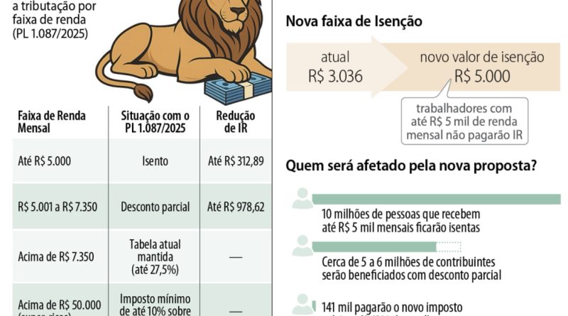 Ler maisO senado aprovou nesta quarta-feira (5) o projeto de lei que isenta do Imposto de Renda (IR) quem ganha até R$ 5.000 mensais e reduz