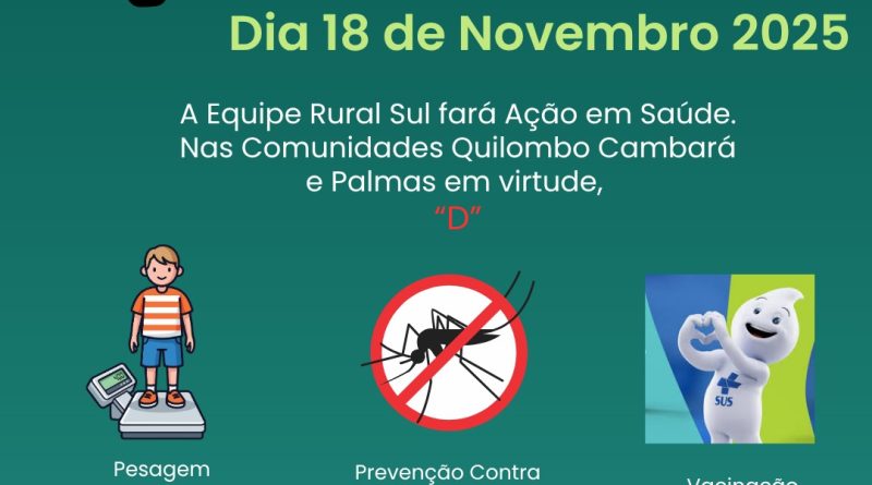 Ler maisA Estratégia de Atenção Primária (EAP) Rural Volante Sul promove, nesta terça-feira (18/11), o Dia D da Saúde Rural nas comunidades do Quilombo Cambará e Palmas, no interior do município. A ação