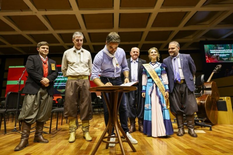 Marcando o encerramento das ações de 2025 do Programa Avançar Tchê, a Secretaria da Cultura (Sedac) promoveu, na quarta-feira, um evento focado na consolidação e na ampliação das iniciativas do governo do Estado pela valorização do tradicionalismo do Rio Grande do Sul. Realizada na Casa da Ospa, em Porto Alegre (RS), a cerimônia contou com a entrega do Prêmio Tradicionalismo Gaúcho – por meio da certificação dos participantes e da liberação de recursos –, a assinatura dos termos de execução cultural do Edital Invernadas Culturais, o lançamento do programa CTG na Escola, o anúncio do apoio à realização de eventos do segmento e a entrega da Comenda Barbosa Lessa ao governador Eduardo Leite pelo Movimento Tradicionalista Gaúcho (MTG).