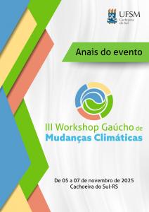 A Comissão Organizadora do III Workshop Gaúcho de Mudanças Climáticas (WGClima) divulgou, nesta semana, os anais do evento. O documento compila os resumos dos trabalhos submetidos e aceitos para apresentação oral e em pôster, oferecendo um panorama das discussões realizadas entre os dias 5 e 7 de novembro de 2025, no Campus da UFSM em Cachoeira do Sul.